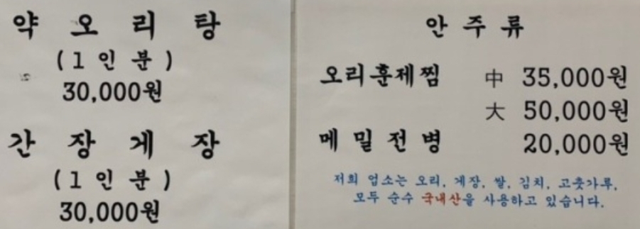 한약재로 만드는 약오리탕 전문점.